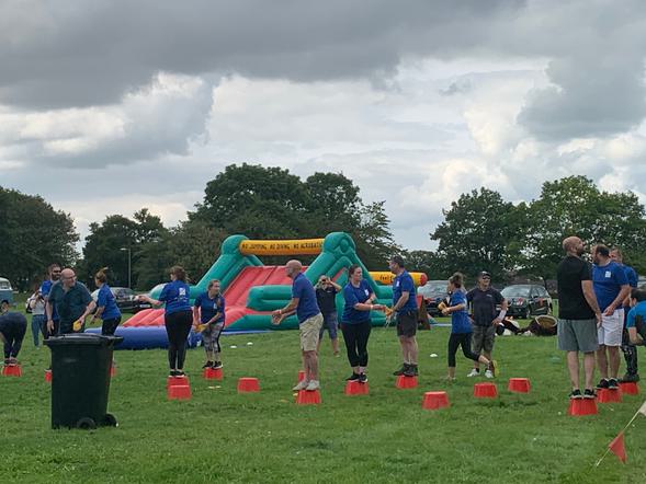 In total eight teams from local businesses and charities battled it out on a course with props used in the original TV series