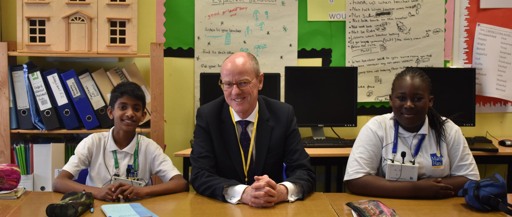 Both explained what Mary Hare has meant to them and how, being at the school has changed their lives, including, having a real friendship group, having the opportunity to access lessons fully and having the confidence to be deaf and not be embarrassed about their hearing equipment, all issues that many deaf children face in a mainstream setting.Mr Gibb then toured the school visiting two lessons; the first a Year 8 lesson with a group of pupils needing a greater language enrichment programme