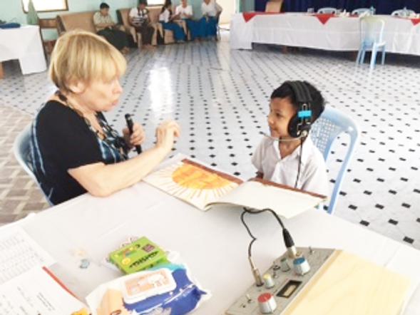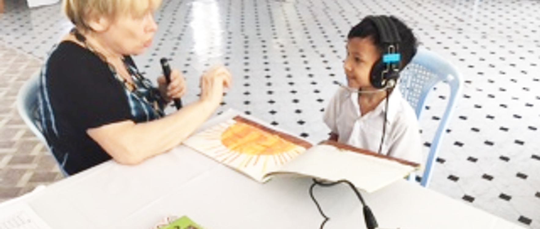 The teachers talk into a speaker and the pupil wears headphones which work like a hearing aid enabling them to maximise their hearing.Two schools, one In Mandalay and one Yangon, were visited by Viv Ogg, previous Head of Audiology at Mary Hare, along with two colleagues, Sue Lewis and Wendy McCracken, on a four week trip to Myanmar.Viv Ogg first visited the schools three years ago